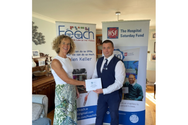 David MacMahon, Account Executive, HSF Health Plan, presenting a grant of €13,500 to Eithne Walsh, Head of Communications & Advocacy, Féach Vision Impaired Support Services to... read more →